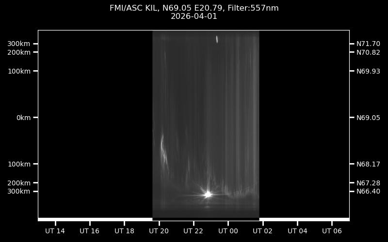 The keograms in here are RAW DATA from the new all-sky cameras and thus NOT SUITABLE for publicication in this format. If you would like to do research based on these images, please contact Kirsti Kauristie (firstname.lastname@fmi.fi) for detailed instrument description, proper keograms, and data interpretation.