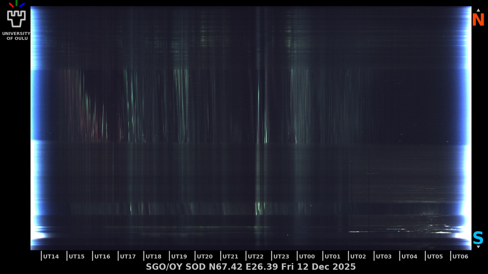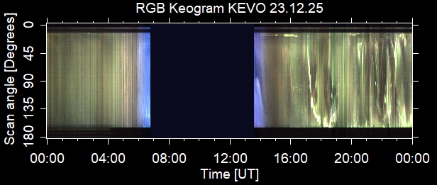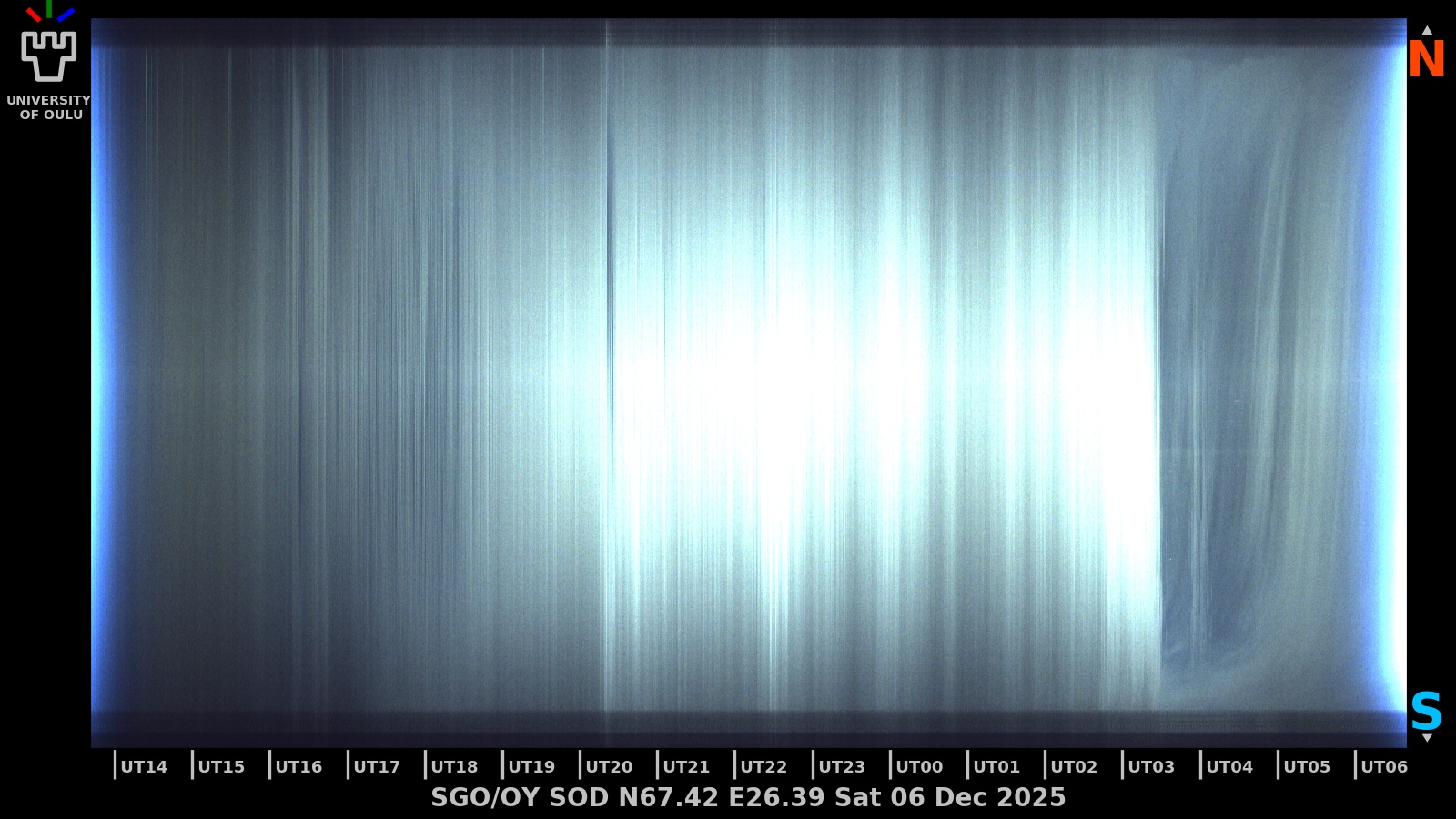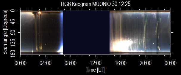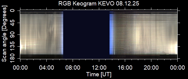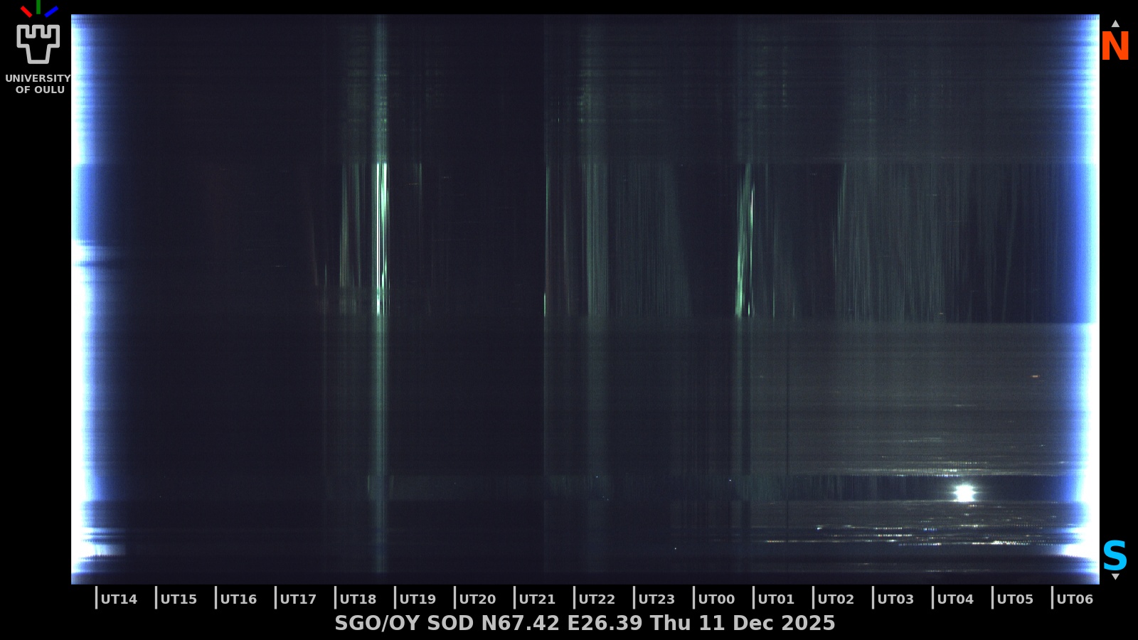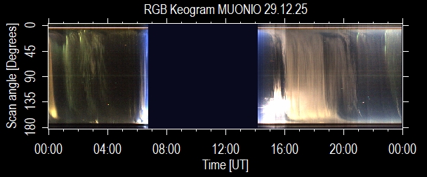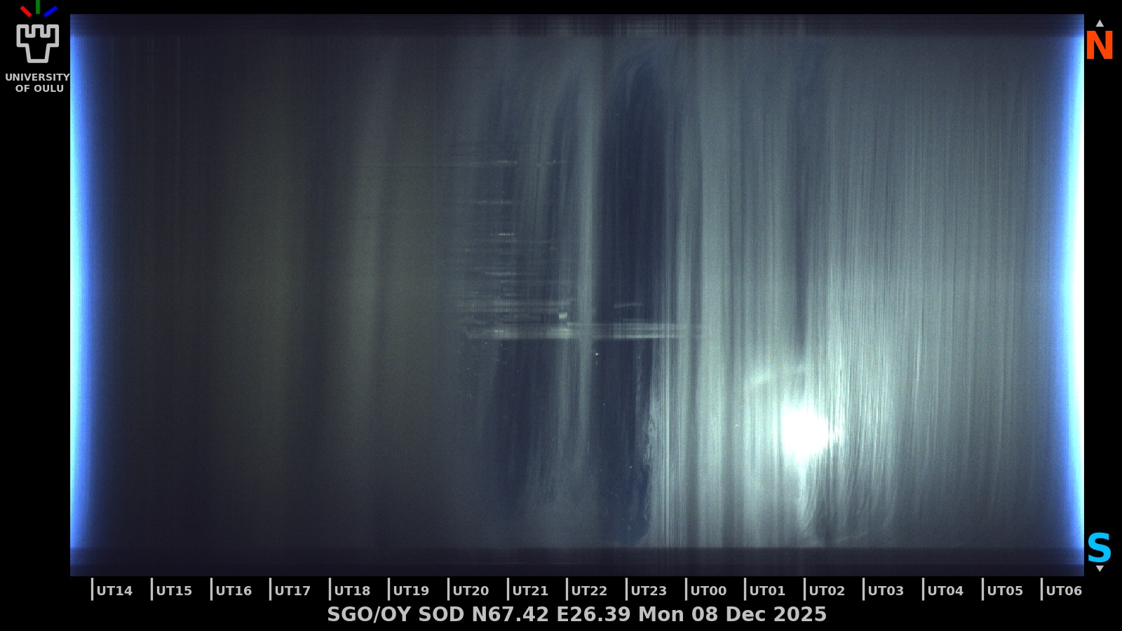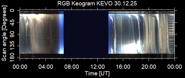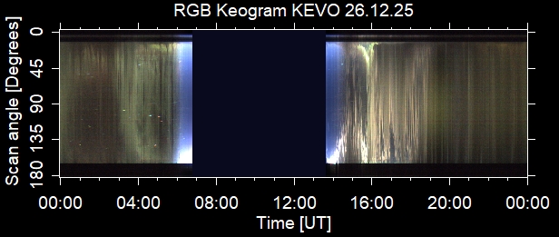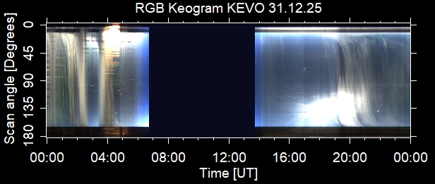The keograms in here are RAW DATA from the new all-sky cameras and thus NOT SUITABLE for publicication in this format. If you would like to do research based on these images, please contact Kirsti Kauristie (firstname.lastname@fmi.fi) for detailed instrument description, proper keograms, and data interpretation.