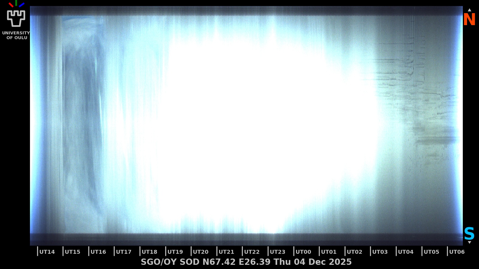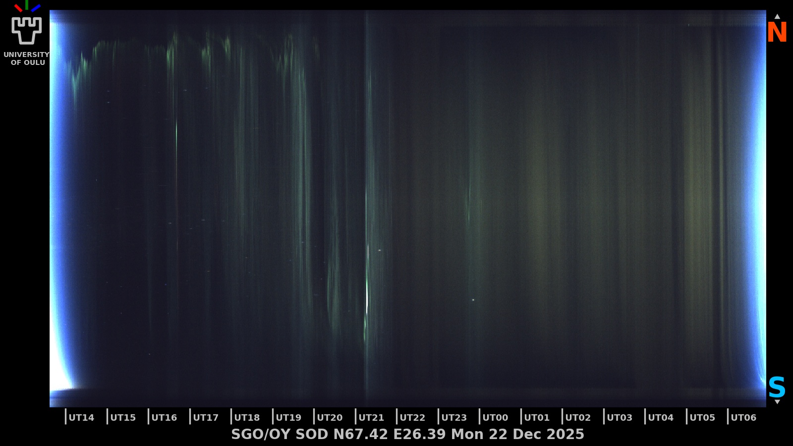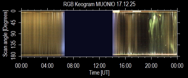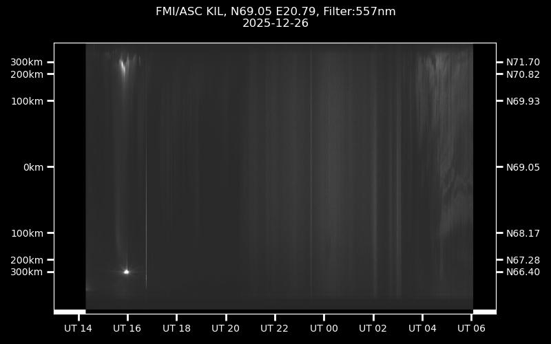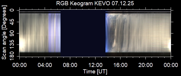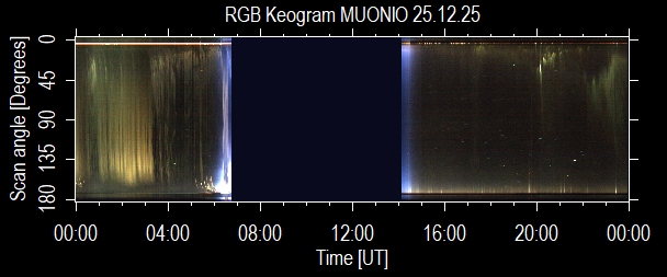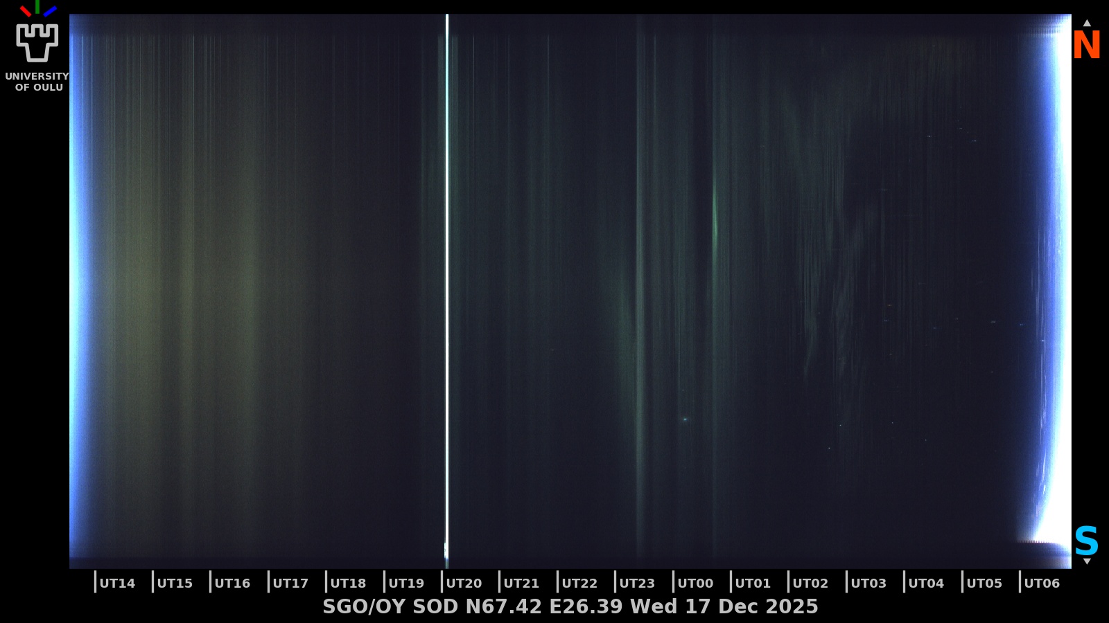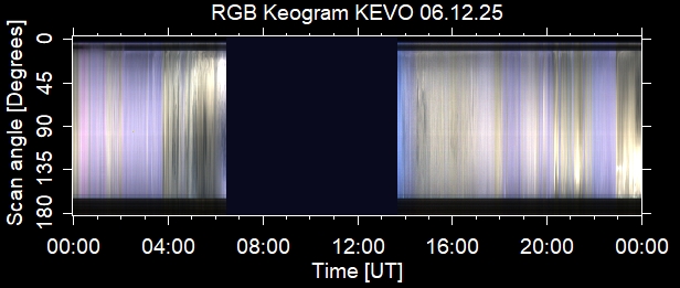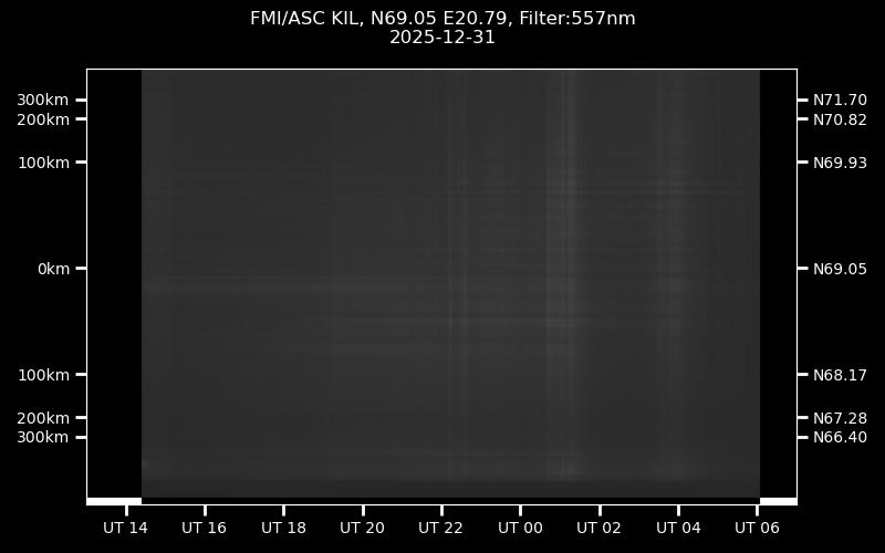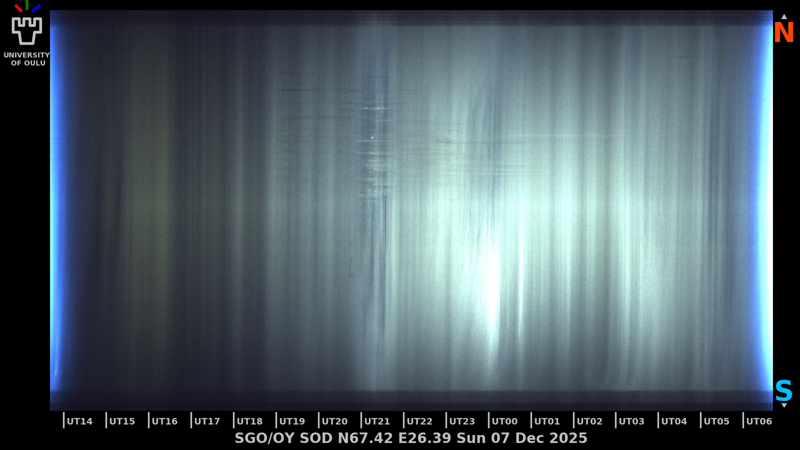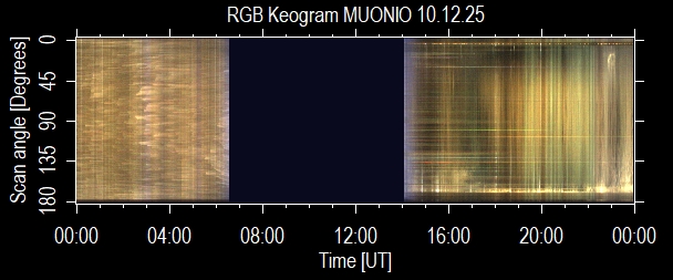 The keograms in here are RAW DATA from the new all-sky cameras and thus NOT SUITABLE for publicication in this format. If you would like to do research based on these images, please contact Kirsti Kauristie (firstname.lastname@fmi.fi) for detailed instrument description, proper keograms, and data interpretation.
