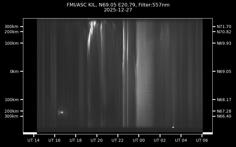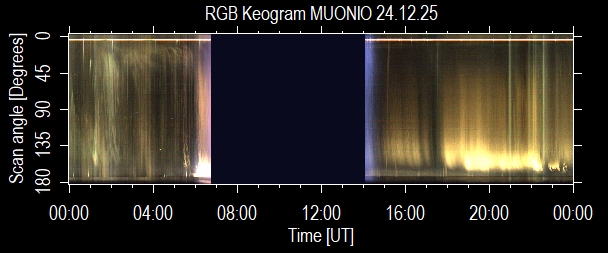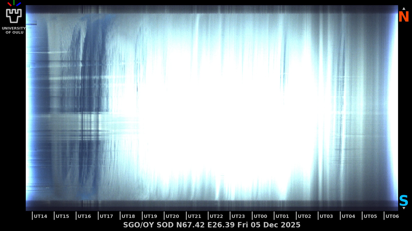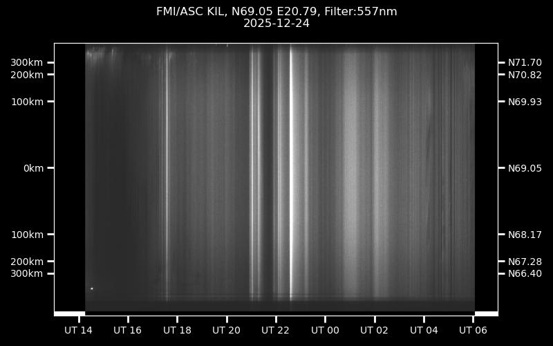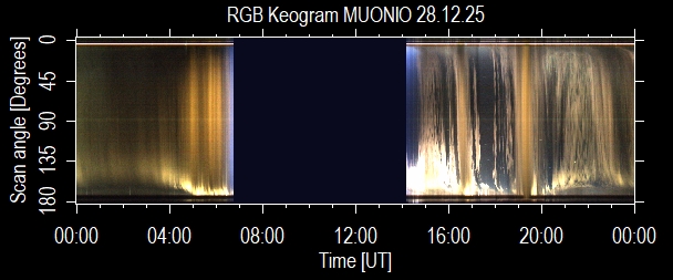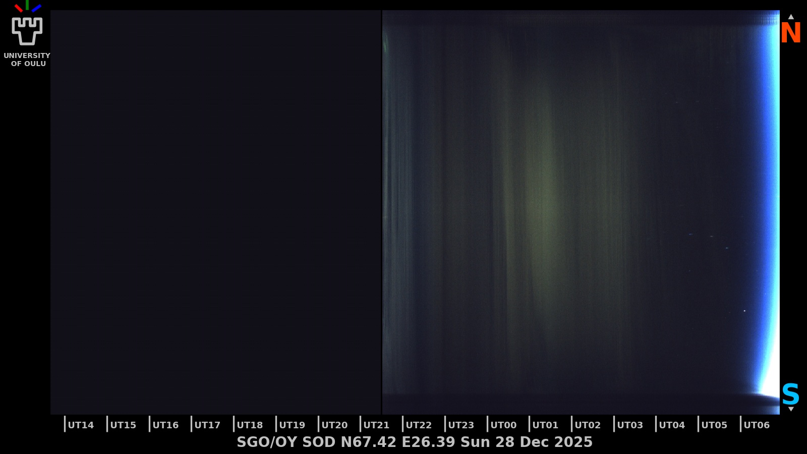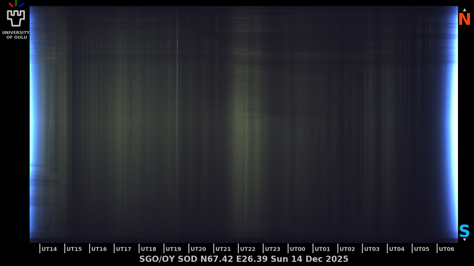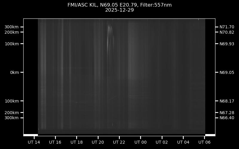 The keograms in here are RAW DATA from the new all-sky cameras and thus NOT SUITABLE for publicication in this format. If you would like to do research based on these images, please contact Kirsti Kauristie (firstname.lastname@fmi.fi) for detailed instrument description, proper keograms, and data interpretation.