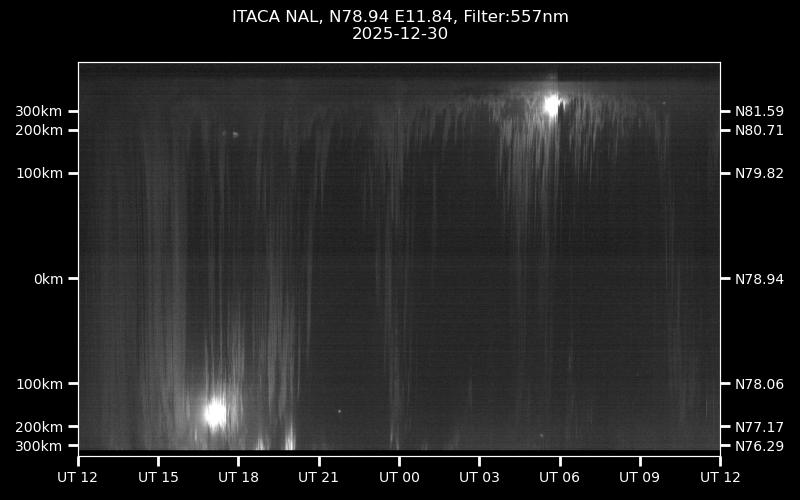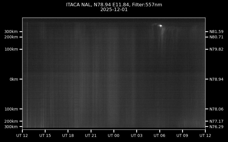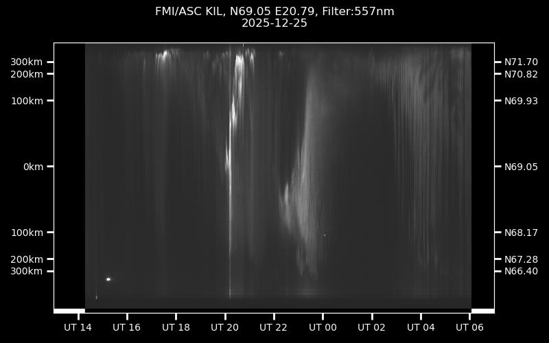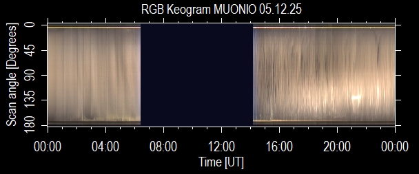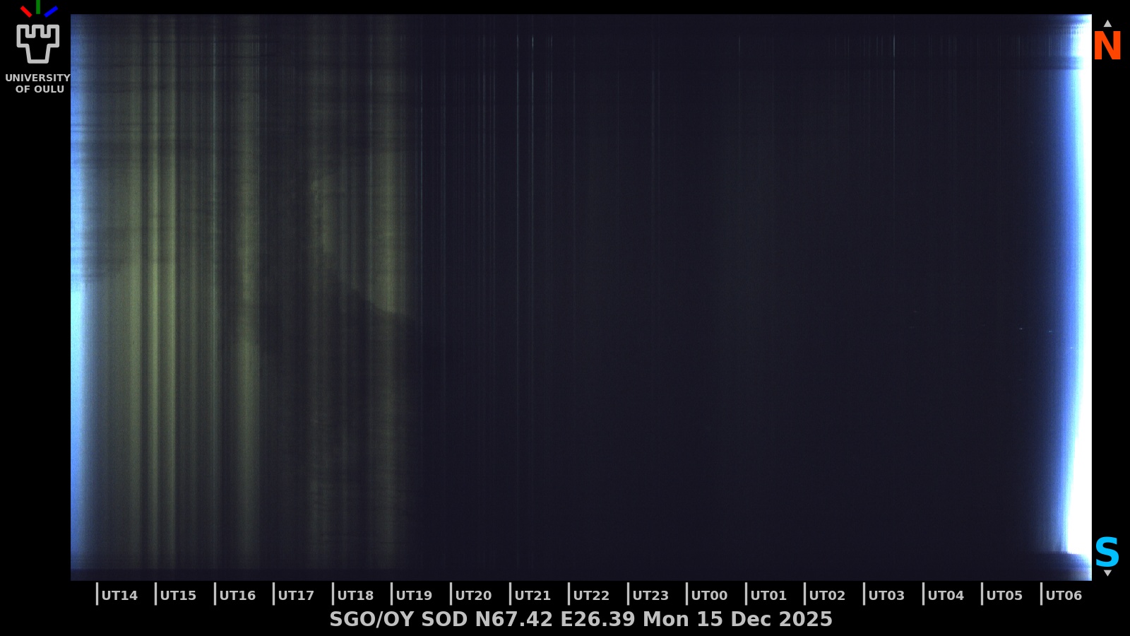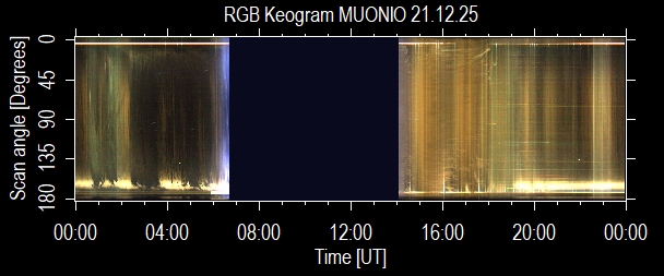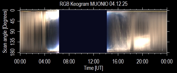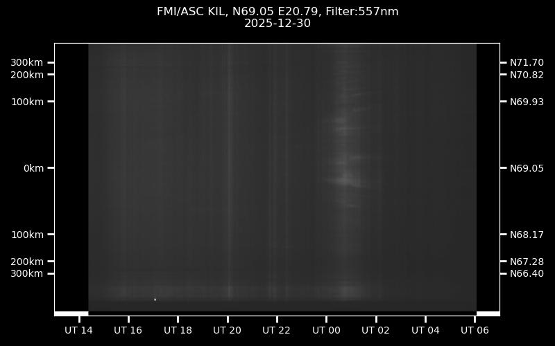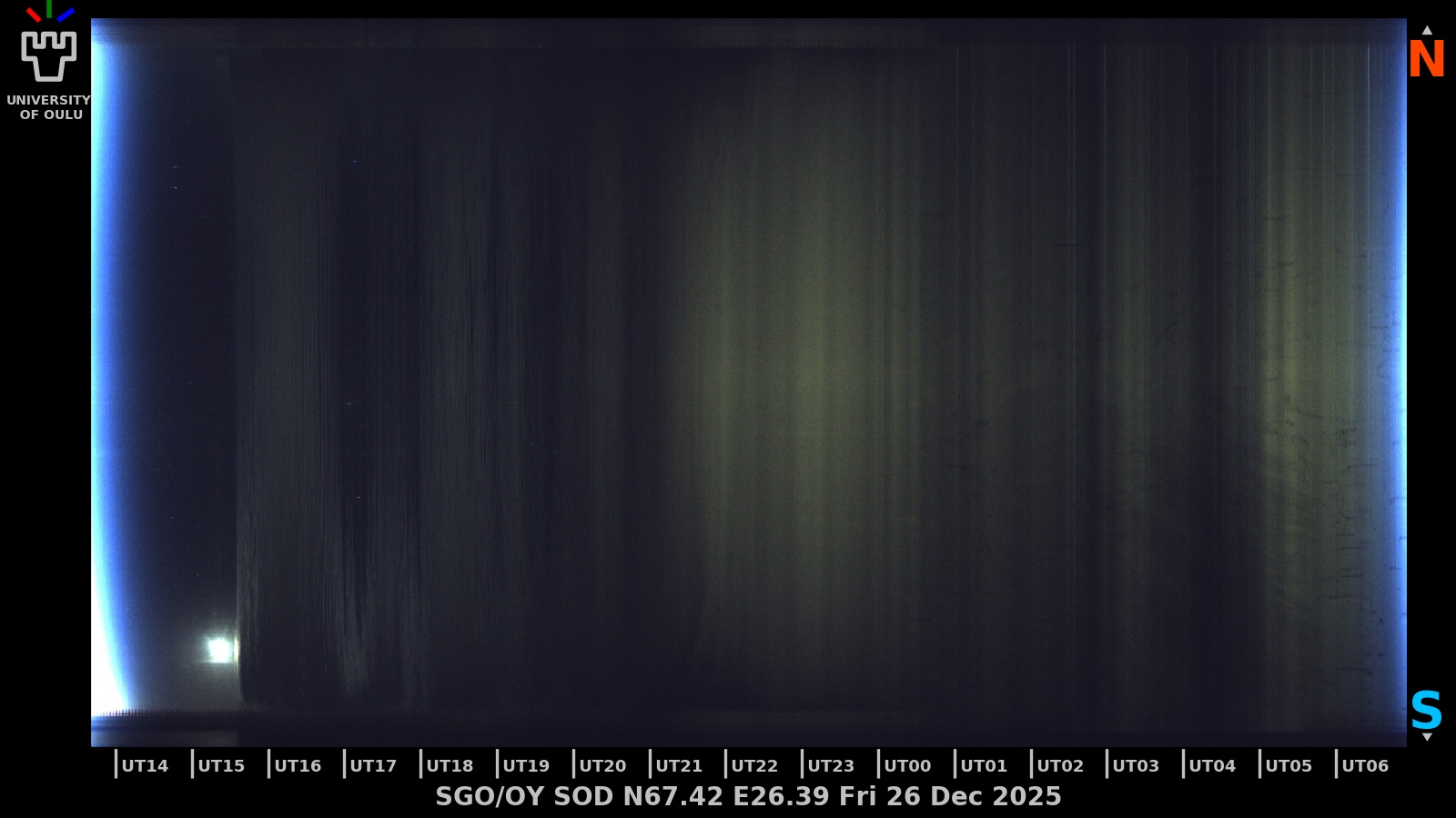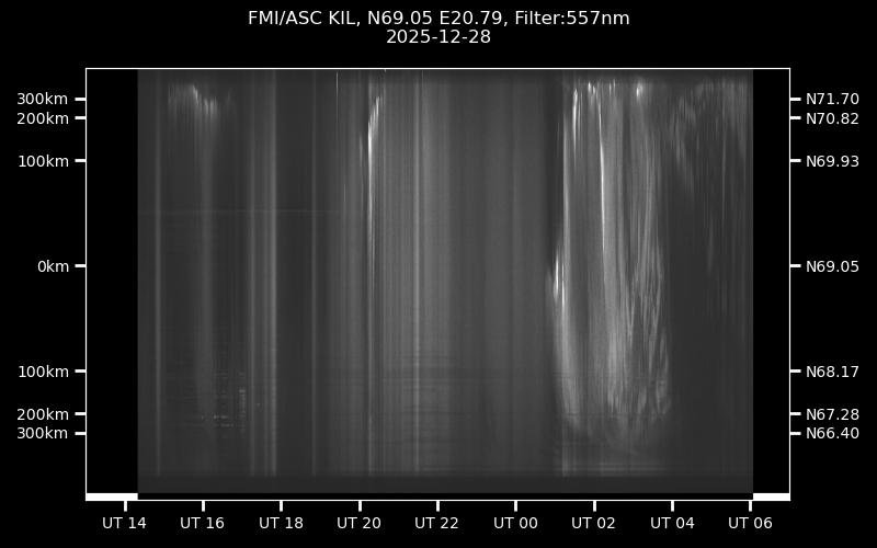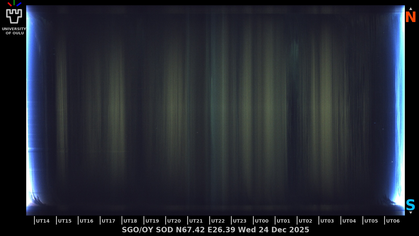 The keograms in here are RAW DATA from the new all-sky cameras and thus NOT SUITABLE for publicication in this format. If you would like to do research based on these images, please contact Kirsti Kauristie (firstname.lastname@fmi.fi) for detailed instrument description, proper keograms, and data interpretation.