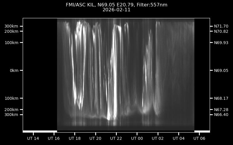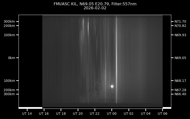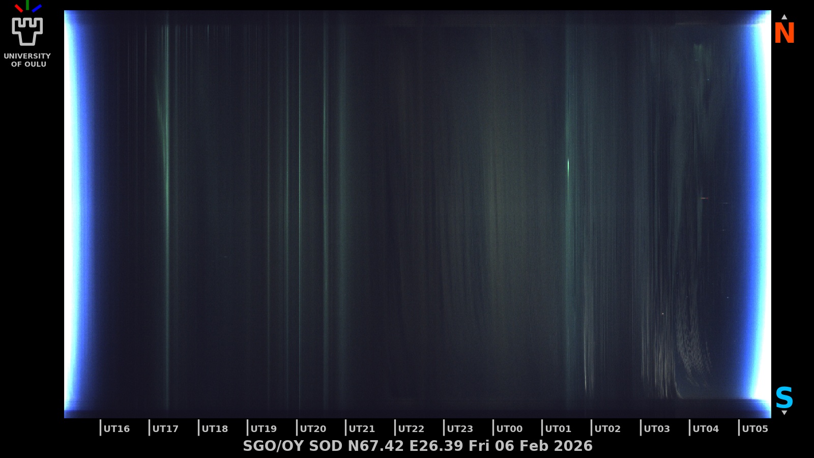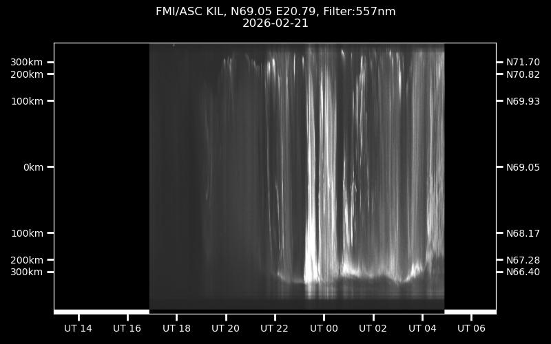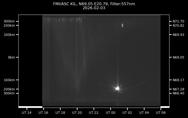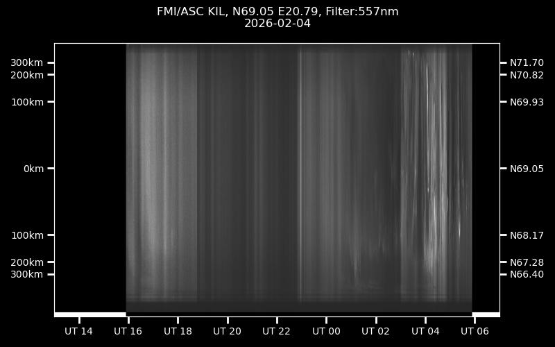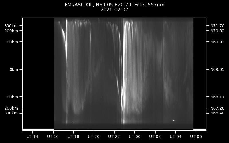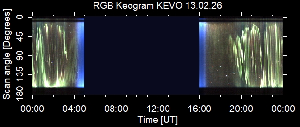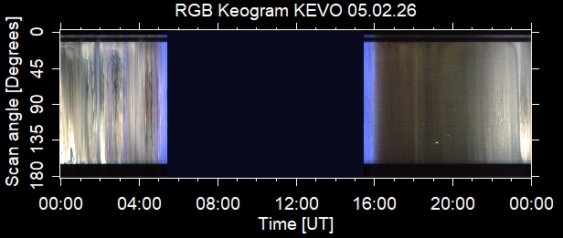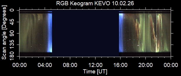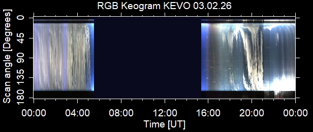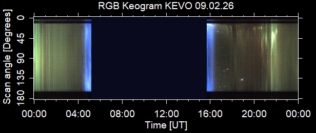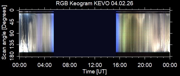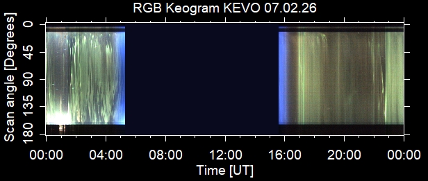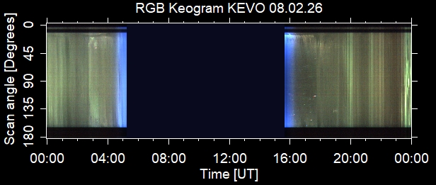 The keograms in here are RAW DATA from the new all-sky cameras and thus NOT SUITABLE for publicication in this format. If you would like to do research based on these images, please contact Kirsti Kauristie (firstname.lastname@fmi.fi) for detailed instrument description, proper keograms, and data interpretation.