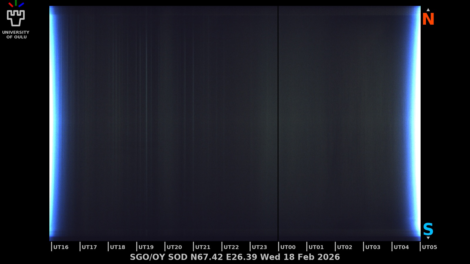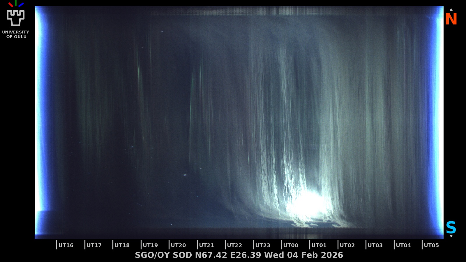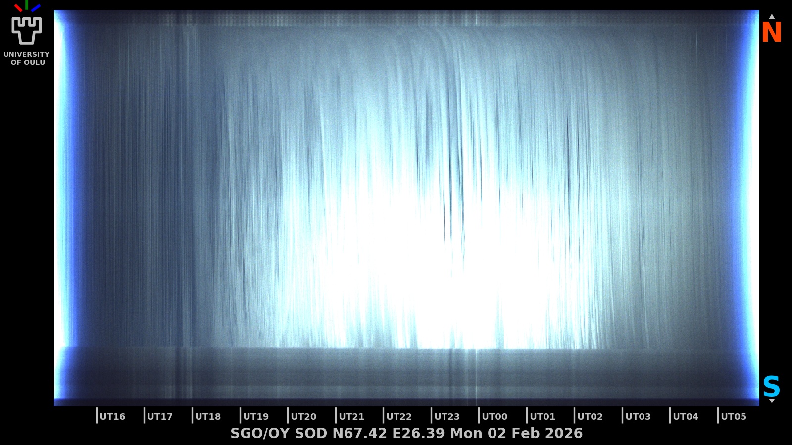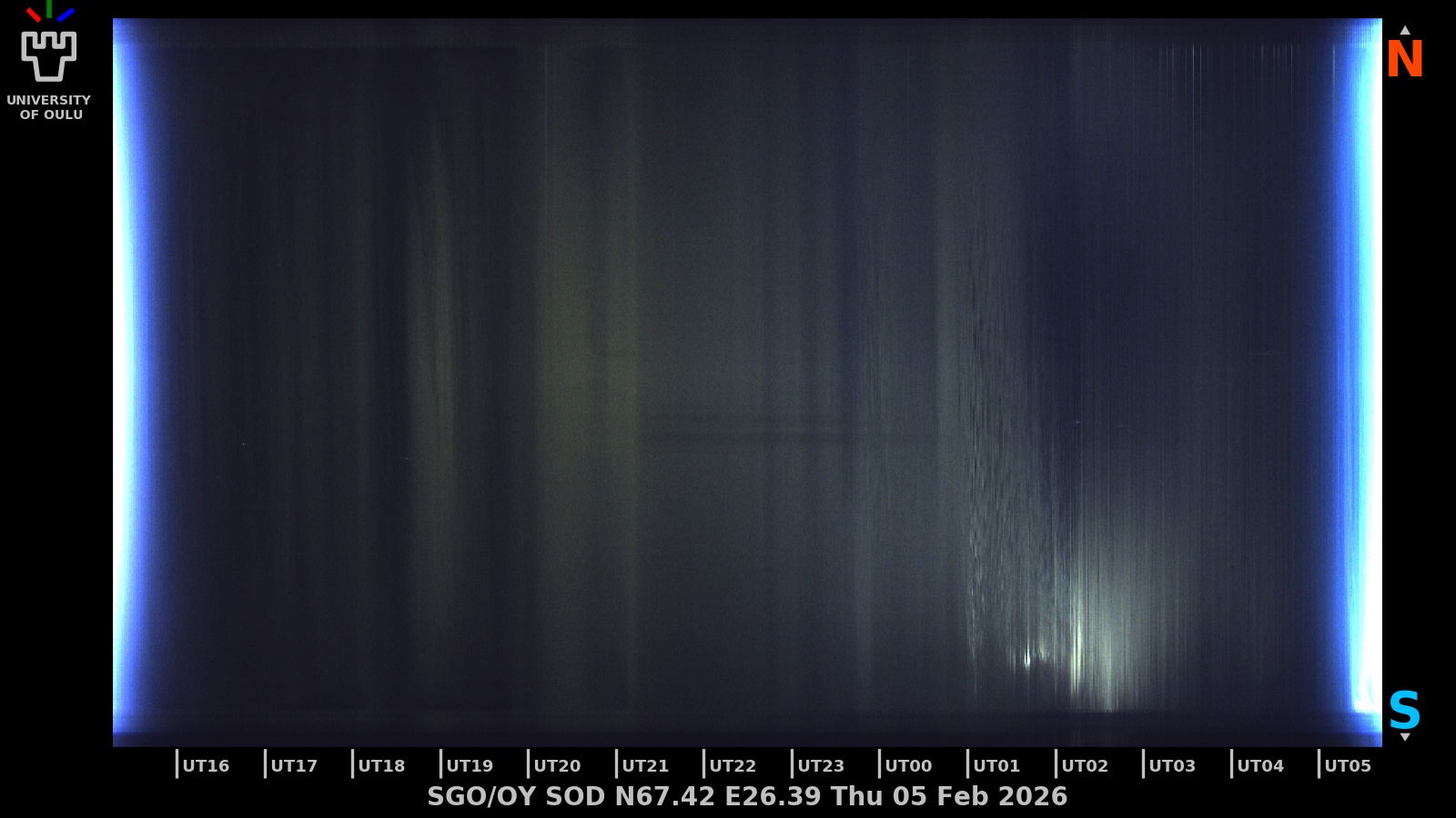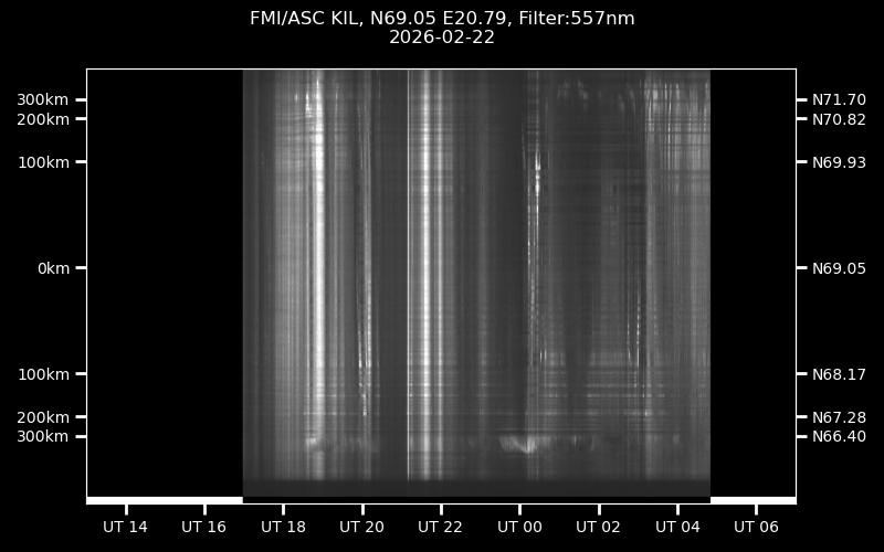 The keograms in here are RAW DATA from the new all-sky cameras and thus NOT SUITABLE for publicication in this format. If you would like to do research based on these images, please contact Kirsti Kauristie (firstname.lastname@fmi.fi) for detailed instrument description, proper keograms, and data interpretation.