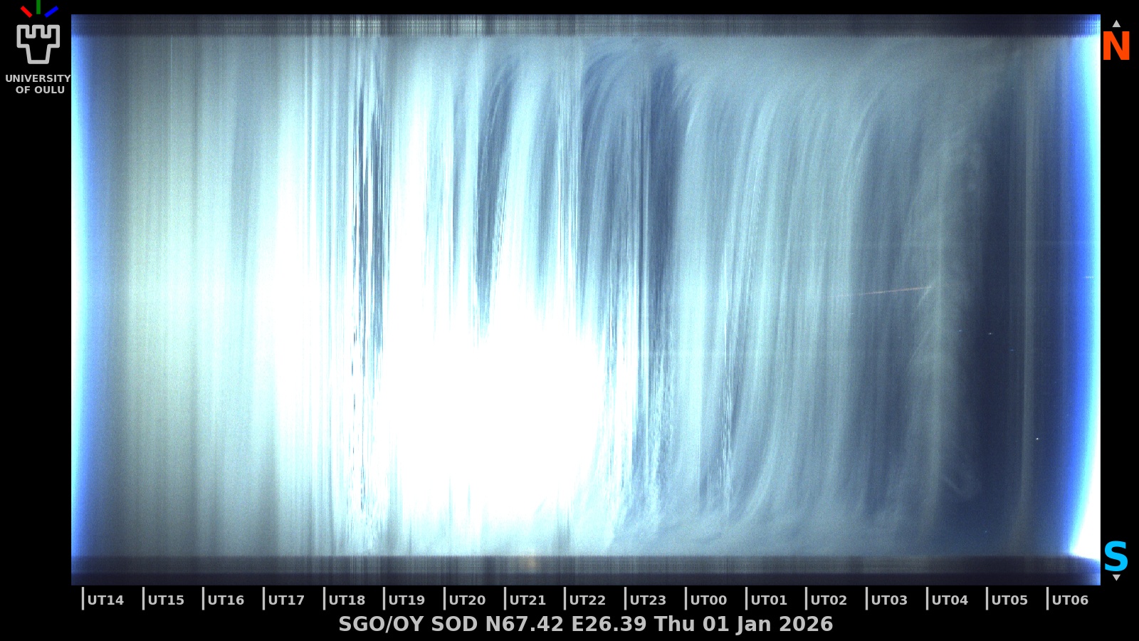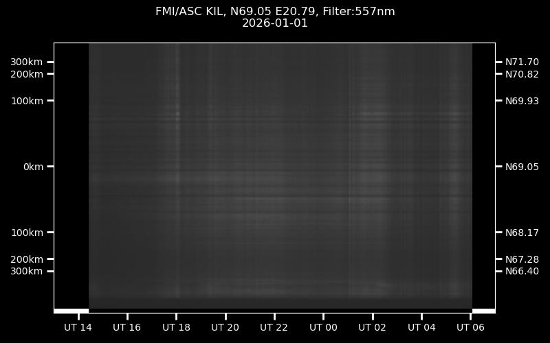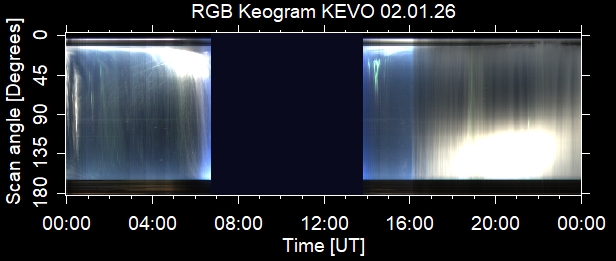 The keograms in here are RAW DATA from the new all-sky cameras and thus NOT SUITABLE for publicication in this format. If you would like to do research based on these images, please contact Kirsti Kauristie (firstname.lastname@fmi.fi) for detailed instrument description, proper keograms, and data interpretation.