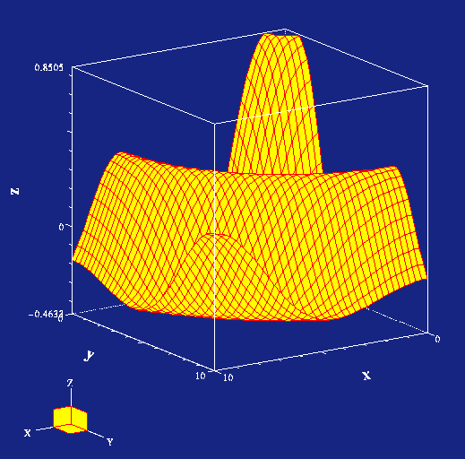 mesh(sin(r)/sqrt(r), "hiddenline","true",